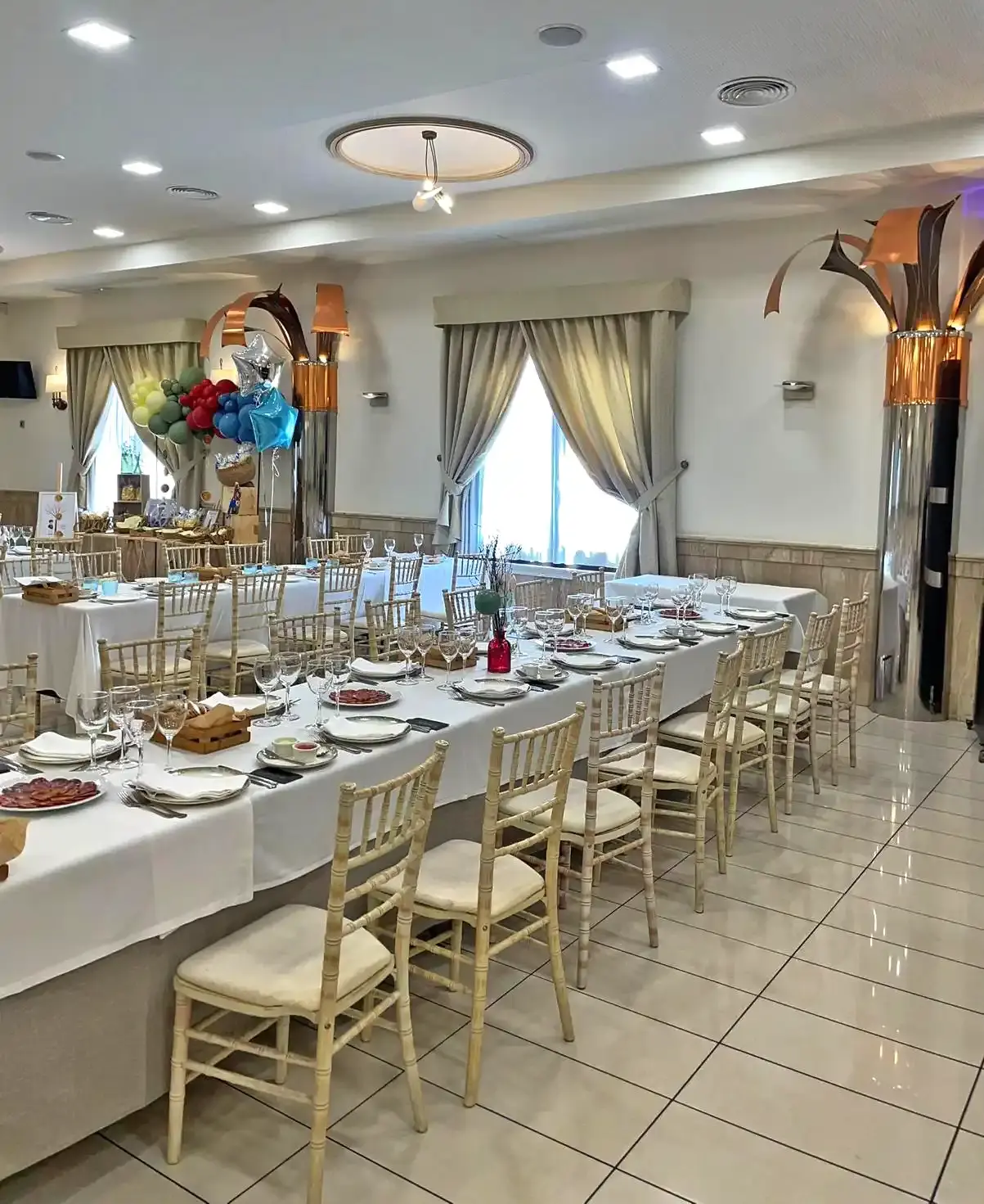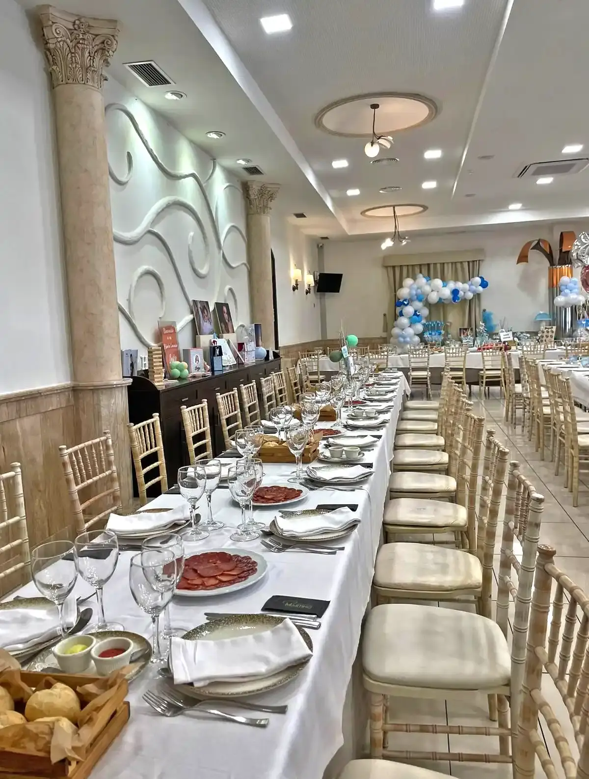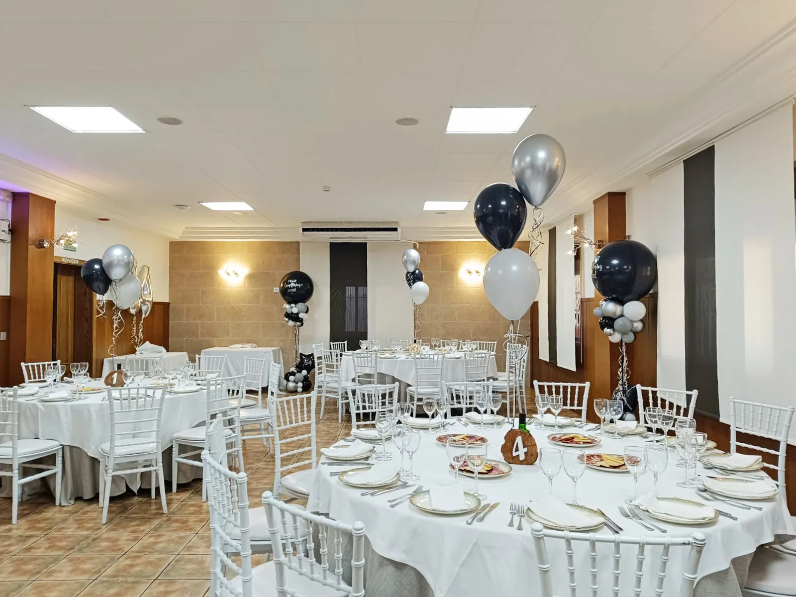 Nuestro salón cuenta con un amplio espacio que puede acomodar cómodamente a numerosos invitados, con mesas y sillas dispuestas de manera elegante para maximizar la comodidad y la interacción.