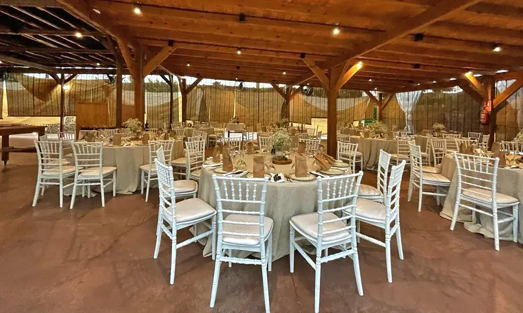 El Salón Rústico cuenta con una amplia y luminosa área que se adapta a diversos tipos de eventos, desde bodas y aniversarios hasta reuniones corporativas y fiestas privadas. Con una capacidad para acomodar cómodamente a sus invitados, nuestro salón está equipado con mesas redondas elegantemente vestidas, sillas cómodas y una decoración que refleja el encanto del estilo rústico.