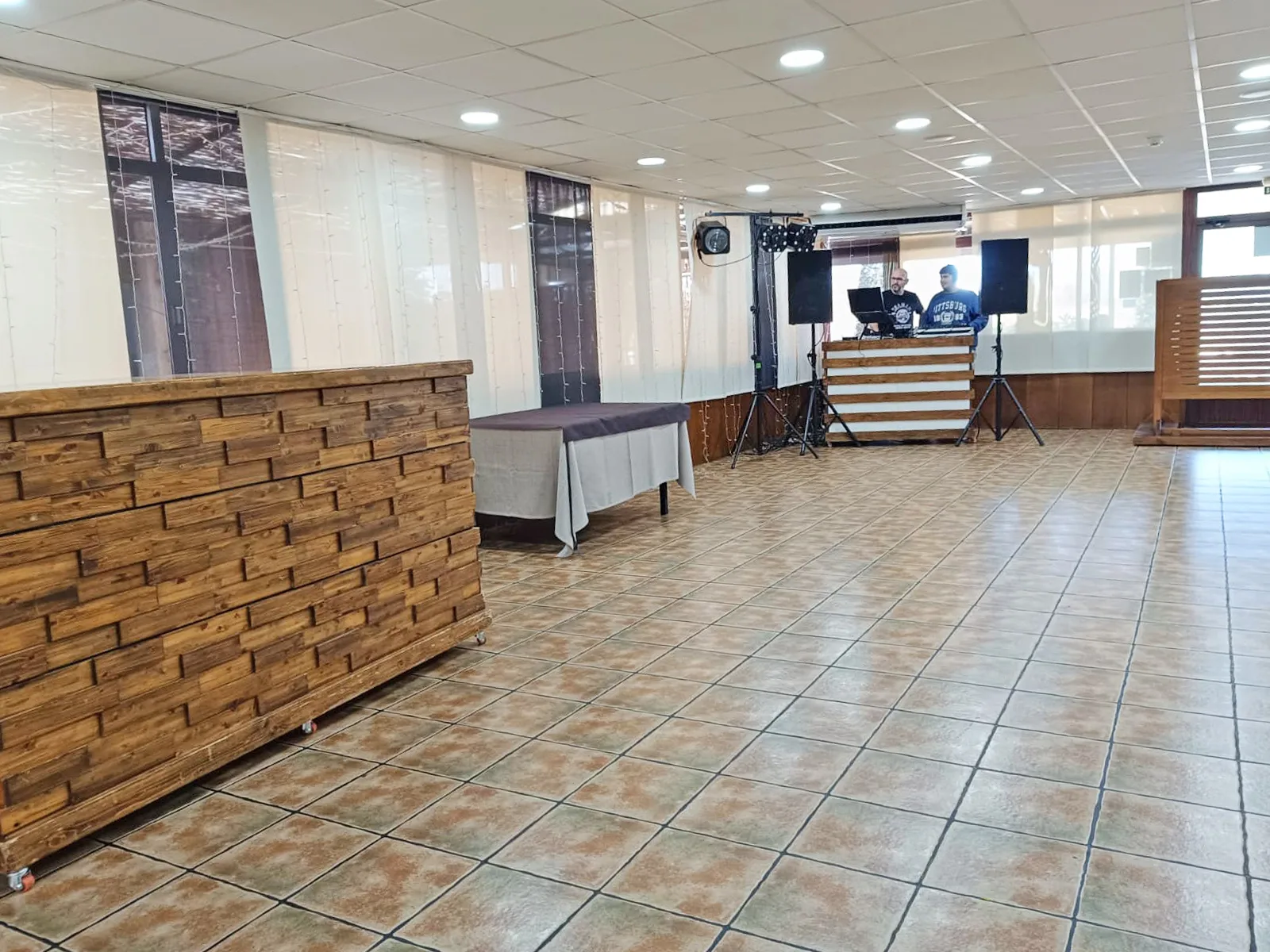 Nuestro salón incluye un área de bar de estilo rústico, ideal para servir bebidas y cocktails, y una pista de baile donde sus invitados pueden disfrutar al máximo.